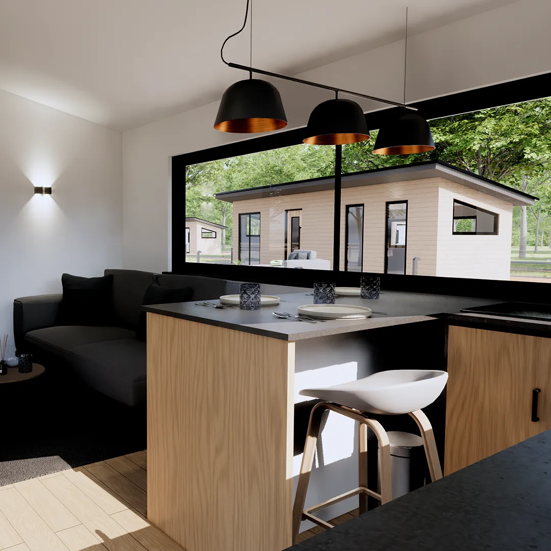 De tiny houses van Jansen zijn slim ontworpen en hebben een compacte woonruimte die maximale functionaliteit biedt. Door slim gebruik te maken van ruimtebesparende oplossingen zoals multifunctionele meubels en slimme opbergsystemen, bieden de tiny houses alles wat je nodig hebt om comfortabel te kunnen leven, werken en ontspannen.